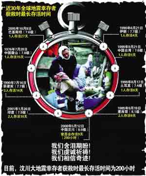 湖南的醫(yī)療隊介紹,7時許,老太太被抬上救護(hù)車緊急送往彭州醫(yī)院。從12日下午被埋開始到被解救的196小時,老太太沒有吃任何東西,只是間歇地喝了點雨水。醫(yī)生介紹,老太太神志比較清晰,已被送到成都華西醫(yī)院治療。