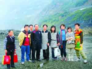 “東西不要了,你們快過來,人最重要”。眼看著山上掉下來的碎石滿天亂飛。我們擔心著他們?yōu)榱宋覀兊呢斘锒俅蜗萑胛kU。終于,所有人都到了安全的地方。查看傷情時,我發(fā)現杭州電視臺的那位男記者胸部受到了較大撞擊,情況不妙;其中一個央視男記者鎖骨受傷,左臂不能動彈;中國日報的女記者頸椎出了問題,頭不能轉了;我的右腳經過簡單適應勉強能夠蹣跚行走;杭州電視臺女記者鞋子沒了;其他幾人大體無恙。清點人數,一個不少,而遠處那臺我們曾經搭乘的汽車已被砸得像個爛皮鞋。
