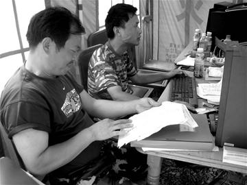 這里的辦公條件也有所改善了。兩臺(tái)發(fā)電機(jī)晝夜不停地運(yùn)轉(zhuǎn),為這片安置點(diǎn)帶來(lái)了光明。10余頂藍(lán)色帳篷安放在平壩上,帳篷周圍還挖有排水溝。一頂帳篷里,辦公桌上擺放著4臺(tái)裹滿塵灰的電腦,幾名工作人員正噼噼啪啪敲打著鍵盤(pán),認(rèn)真地將一個(gè)個(gè)剛采集到的數(shù)據(jù)錄入電腦!拔覀冞@里24小時(shí)都有人值守!24日晚才值守了通宵的馬天嶺來(lái)不及休息,正在翻閱著各個(gè)村組報(bào)送上來(lái)的數(shù)據(jù)。雙眼布滿血絲的他說(shuō),災(zāi)情發(fā)生后,他所在的統(tǒng)計(jì)組每天都要統(tǒng)計(jì)大量數(shù)據(jù):最新的人口數(shù)據(jù)、傷者和遇難者數(shù)據(jù)、房屋受損數(shù)據(jù)、農(nóng)業(yè)受損數(shù)據(jù)……由于這些數(shù)據(jù)可能會(huì)涉及定損和補(bǔ)償,核對(duì)時(shí)他一點(diǎn)都不敢馬虎!懊恳粋(gè)數(shù)據(jù)都將會(huì)為今后的重建帶來(lái)幫助!