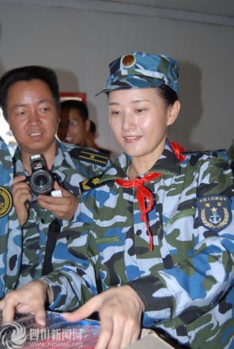 海軍少將宋祖英赴四川綿竹和小學生過兒童節(jié)(圖)(2)