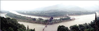 千年以來(lái),離堆前的江口處漸漸形成了一座城市。城市以離堆為中心呈扇形分布。無(wú)論是草廬泥舍,還是后來(lái)的高樓廣廈,都像跪拜的臣子,面向離堆,祭祀征服自然的奇跡。千年以后,這座城市叫做都江堰。
