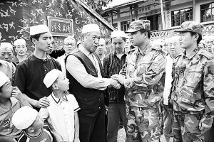 悠長(zhǎng)的誦經(jīng)聲在“帳篷清真寺”四周縈繞。蒿溪回族鄉(xiāng)鄉(xiāng)長(zhǎng)魏光忠正巧上山來(lái)查看危房!爱(dāng)年,紅軍經(jīng)過(guò)此地,與當(dāng)?shù)鼗亍h群眾結(jié)下了深厚的情誼。今天,‘民族大團(tuán)結(jié)、軍民一家親’的動(dòng)人情景在蒿溪再現(xiàn)!蔽汗庵腋嬖V記者,連日來(lái),部隊(duì)官兵搜救搶險(xiǎn)不懼艱險(xiǎn),運(yùn)送物資不知疲倦,還專(zhuān)門(mén)開(kāi)設(shè)了多個(gè)“清真救助站”。
