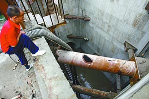 昨日,地鐵4號線工地正在抽水。本報記者 張濤 攝