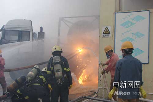 據(jù)該公司相關(guān)人員介紹,大貨車兩個槽罐共裝載了18噸黃磷,13號晚上從貴州運(yùn)抵南寧后,一直就停在公司里面。上午10點左右,靠近車頭的槽罐底部突然泄漏,泄漏的黃磷遇空氣后自燃,導(dǎo)致火災(zāi)的發(fā)生。