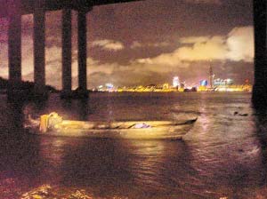 事發(fā)當(dāng)日晚7時(shí)20分左右,廣東邊防總隊(duì)第五支隊(duì)兩名執(zhí)勤哨兵在距離澳門(mén)葡京賭場(chǎng)只有一水之隔的珠澳邊防線上巡邏時(shí),發(fā)現(xiàn)橫琴大橋底下一名男子撐著一條小木船正慢慢地向澳門(mén)方向劃去,形跡可疑。