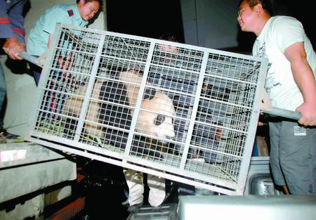 一輛卡車抬出8只大熊貓
