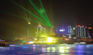 。ㄖ貞c)市城市照明管理局的曾科長(zhǎng)表示,6月21日20點(diǎn)40至21點(diǎn)之間,朝天門(mén)廣場(chǎng)周?chē)M(jìn)行了激光燈表演,但是沒(méi)有添加燈光效果的圖案和文字。