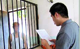 一同前往監(jiān)獄的一位省高院工作人員說,看起來陳雙全的精神不是很好。審判人員很快宣讀完了裁定書,當聽到核準西安市中院的死緩判決時,陳雙全沒有表現(xiàn)出任何驚訝和慌張的表情,顯得比較鎮(zhèn)定,“可能是跟他沒有上訴有關(guān),也可能他根本不知道還有復(fù)核的程序。”接過送達回證時,陳雙全看了一遍,“非常仔細,看了好長時間!钡却愲p全在回證上簽完字并摁了手印后,審判人員將一份裁定書隔著鐵欄桿遞了過去,陳雙全再次仔細地看完了裁定書,然后被帶回。