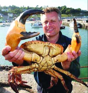 英國(guó)白金漢郡愛(ài)斯勃雷市潛水員保羅·沃斯利在多塞特海岸的利米灣潛水時(shí),竟然在48米深處的一艘戰(zhàn)艦殘骸下發(fā)現(xiàn)了一只重達(dá)7.7公斤、寬達(dá)30厘米的“妖怪螃蟹”!沃斯利冒著危險(xiǎn)將這只“超級(jí)螃蟹”捉上了水面,專(zhuān)家相信,這只螃蟹是全世界曾經(jīng)捕上岸來(lái)的最大可食用螃蟹。