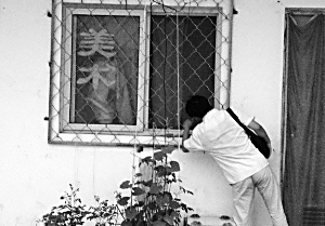 本報(bào)訊 昨日早晨7時(shí),張某的畫室大門緊閉。這間畫室位于海淀區(qū)永豐中路亮甲店村北京新海淀計(jì)算機(jī)學(xué)校南側(cè)路口近300米處,一棟高兩層的簡(jiǎn)易樓房?jī)?nèi)。畫室在簡(jiǎn)易樓房一層,窗戶玻璃上貼著“美術(shù)”二字,透過玻璃可看到窗臺(tái)上擺著一尊石膏像,屋內(nèi)只有兩張桌子。