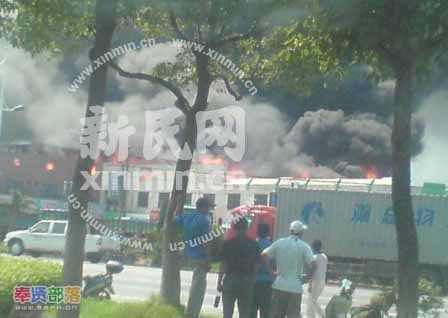 2008年7月17日下午2點(diǎn)30分,新民網(wǎng)接到網(wǎng)友報(bào)料稱,奉賢區(qū)齊賢鎮(zhèn)有工廠大火,預(yù)計(jì)損失2億,現(xiàn)有50多輛消防車到場(chǎng)。新民網(wǎng)記者電話連線網(wǎng)友楊先生,楊先生稱現(xiàn)場(chǎng)就像原子彈爆炸一樣,天空全黑了。