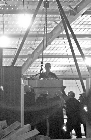 為了確保安全,有關(guān)部門請了兩個吊運公司來實施整個吊運方案。首先,用槽鋼將石底座以及舍利函全身包裹起來,這樣加固后鐵函和底座將牢牢結(jié)合在一起,吊運時也不易發(fā)生晃動等現(xiàn)象。之后通過“井口”的定滑輪把舍利函慢慢吊上來。