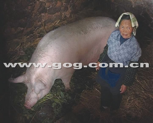 村民們說(shuō),這頭豬已被主人喂了整整7年。半年前就有人測(cè)量過(guò),它的身長(zhǎng)有2.3米,高約1.2米,腰圍也有2米多,體重為1300余斤。這頭豬的主人每天給豬喂的主食是煮熟的玉米面,每天要吃6斤左右的玉米,零食是主人每天給它割的生豬草。