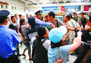 就乘客所言的“遭南航一工作人員辱罵”的情況,袁權(quán)說“沒有這回事”。機場一警官稱,當(dāng)時并非警民沖突。經(jīng)調(diào)查,系南航工作人員說了一些過激的言辭,導(dǎo)致乘客情緒失控,當(dāng)時有乘客做出了一些過激的行為,還有些人沖進服務(wù)點推翻電腦,但電腦未損壞。