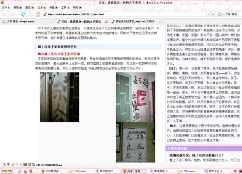 此后,一場規(guī)模龐大的“人肉搜索”在網(wǎng)絡上展開。王菲和所謂“第三者”的照片、工作單位和地址、家庭人員狀況、個人電話號碼等信息被不同的網(wǎng)友不斷詳細地披露在網(wǎng)絡上。