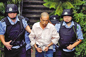 民警押解揚言炸公交的犯罪嫌疑人。
