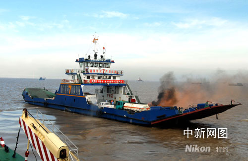 中新網(wǎng)南通八月六日電 (華俊)“七號(hào)駕駛臺(tái),甲板呼叫,甲板有人放火!蔽迦丈衔缇劈c(diǎn),隨著海太汽渡“海太七號(hào)”水手長(zhǎng)一陣急促的呼叫,二〇〇八年江蘇南通海門市水上反恐應(yīng)急救援演習(xí)拉開(kāi)了序幕。