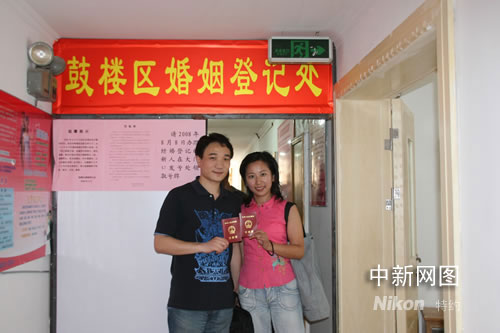 問起為什么選擇今天領(lǐng)證,正在等待拿證的程先生一臉驚詫的看著記者:這還用問嗎,地球人都知道,奧運(yùn)來了唄。