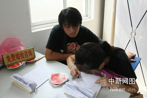 圖為一對(duì)新人在填寫一系列表格。作 者:牛莉