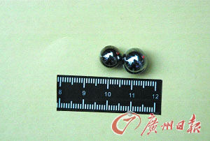 這就是打破汽車玻璃的兩顆鋼珠。邵權(quán)達(dá) 攝