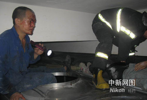 此時,劉華景發(fā)現(xiàn)帶來的照明燈也因為爆炸失去了功能,周圍一片漆黑。妻子受傷在一旁無法起身,丈夫為救妻子,一邊關掉了昏前使用的氧氣瓶,一邊拖著傷重的身體摸索著下水箱的梯子(現(xiàn)場一片漆黑,當時的梯子只搭在水箱上面,高度兩米五左右,劉華景眼睛受傷,只能摸索),費勁體力,終于找到了樓上值班的員工,并帶到了事故地點營救妻子。但事情卻沒有那么簡單,妻子的腰部受傷嚴重,如果輕易抬動,可能導致整個人永久癱瘓,所以員工不敢輕易救援,只能撥打了“120”和“119”救助。