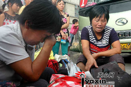 李志峰帶來的老鄉(xiāng)們坐在車前哭泣。