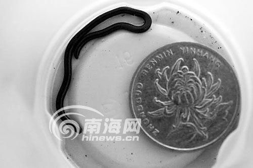 海南萬寧后安鎮(zhèn)何先生18日早晨9點在自家后院抓到一條只有一根牙簽大小的類似蛇的生物(右圖),何先生對照本報曾經(jīng)報道過的重慶發(fā)現(xiàn)“世界最小的蛇”的文章后稱,他發(fā)現(xiàn)的生物才是真正的“世界最小”。小生物通體黑色,長約6厘米。何先生告訴記者,他小時候也曾經(jīng)見到過這種生物,在海南鄉(xiāng)村、墻角、衛(wèi)生間等潮濕的地方就會碰到這種小生物。但具體這是哪種生物,學名怎么稱呼,到底有沒有毒,何先生稱不甚了解。(南國都市報 記者李域攝影報道)
