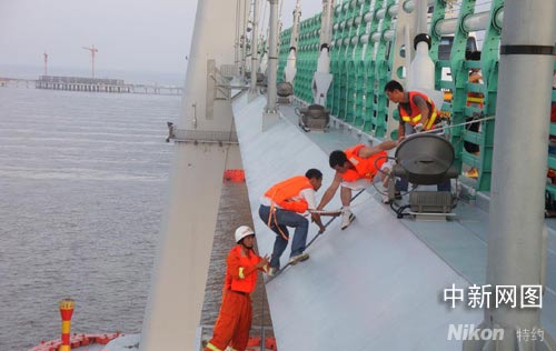 中新網(wǎng)寧波8月22日電(見(jiàn)習(xí)記者 何蔣勇 通訊員 張文榮)21日16時(shí)50分,位于杭州灣跨海大橋南航道位置,大橋養(yǎng)護(hù)中心的3名工作人員在大橋箱梁下面的檢修車(chē)上作業(yè)時(shí)被困。半小時(shí)后,三人被安全救出。 這也是世界第一跨海大橋——杭州灣跨海大橋上發(fā)生的第一次救人行動(dòng)。