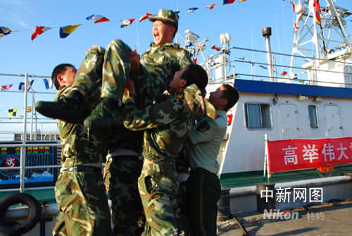 在碼頭迎接現(xiàn)場,記者發(fā)現(xiàn)執(zhí)勤官兵們幾乎都被曬成清一色的黝黑皮膚,“北侖號”教導(dǎo)員蔡暄盛給我們列舉了一組數(shù)字:執(zhí)行奧運安保出海執(zhí)勤任務(wù)16個航次,航時369小時20分鐘,航程1801.4海里,驅(qū)趕船舶178艘,打撈各類漂浮物42件,發(fā)現(xiàn)圍油欄破損38處。
