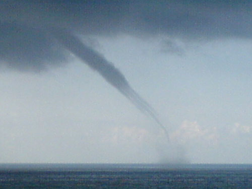據(jù)目擊到“龍吸水”奇觀的南山景區(qū)工作人員介紹說,今天上午10時許,在南山寺觀海平臺處正南方海面上空突然出現(xiàn)一團烏云,云團一角懸掛著一條形似“龍尾”的烏云斜插入遠邊的海平線。接著,“龍尾”烏云在海面上漸漸吸起一層海水,沖起約百米高的巨大水柱,一時間水柱和天上的烏云連接在一起。隨后,這團烏云和水柱向108米南海觀音像方向移去。這“龍吸水”的奇觀持續(xù)約10分鐘。
