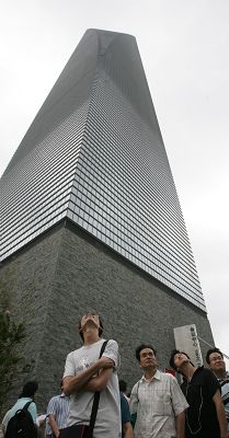 游客仰望環(huán)球金融中心