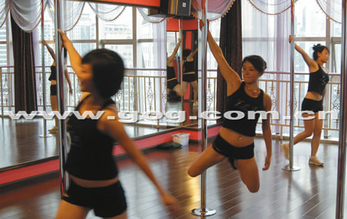 9月2日,夜幕降臨,位于貴陽市噴水池某大廈的鋼管舞訓(xùn)練房內(nèi),強(qiáng)勁的音樂響起,燈光閃爍,5名身穿超短裙的女青年在教練指導(dǎo)下,圍著一根鋼管上下左右的翻轉(zhuǎn),她們跳的是——鋼管舞。