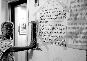 關(guān)于居民貼的“公告”,李先生說,雖然大家能理解其心情,可寫這些臟話也對居民造成視覺污染,他們正在調(diào)查作者身份,一旦查出,作者要為其行為負責。(記者田北北)