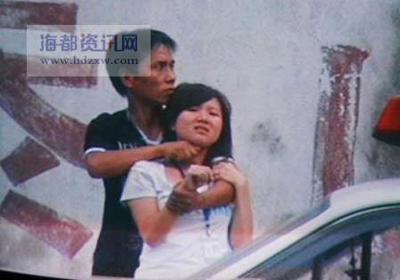 下樓后,該男子劫持人質(zhì),走到汽車北站廣場一圍墻下,背靠圍墻與警方對峙。此時(shí)該男子右手握刀,死死頂住站務(wù)員的脖子,左手則牢牢抓著站務(wù)員的右手。