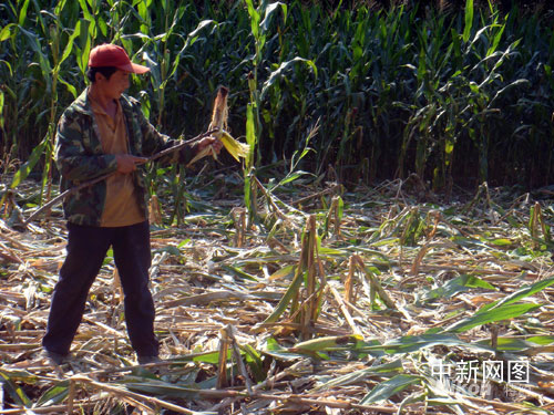 在吉林省樺甸市橫道河子鄉(xiāng)荒山村臥龍屯,野豬經(jīng)常會(huì)突然闖進(jìn)農(nóng)民的玉米地,啃食玉米!把劭从衩壮墒炝耍瑓s被野豬成片成片地毀壞!贝迕裱ν赫f(shuō),他家的玉米地就被野豬毀了,啃食的玉米棒散落一地。