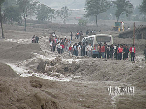 記者在事故現(xiàn)場看到,距垮塌尾礦下游大約一公里處是一集貿(mào)市場,集貿(mào)市場已被泥石流夷為平地,一座辦公樓被推行了十幾米,集貿(mào)市場附近的云合村部分房屋受損。