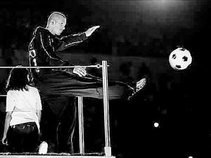 這只黑白相間的足球以一個(gè)漂亮的“貝氏弧線”飛向遠(yuǎn)處,現(xiàn)場(chǎng)一名年輕的志愿者飛身上前,穩(wěn)穩(wěn)地把足球攬入懷中。懷抱足球,他那燦爛的笑容感染了現(xiàn)場(chǎng)和電視機(jī)前的億萬觀眾,人們情不自禁地為這位快樂的陽光男孩、為偉大的奧林匹克精神歡呼。