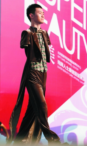 昨天,40名普通殘障人士在國家奧林匹克公園祥云劇場上演了一場“時(shí)裝秀”。這是國內(nèi)首次為殘障人士舉辦的康健服裝展演。