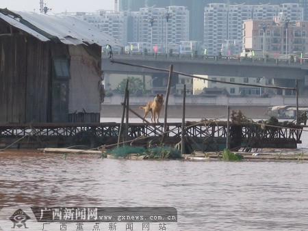 水上人家的一條狗對(duì)著洪水狂吠。伍永志攝