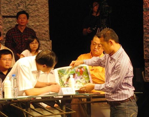 紅領(lǐng)帶男觀眾:我不是挑戰(zhàn)劉教授的說(shuō)法,我是談我自己的看法。剛才劉教授搞錯(cuò)了一個(gè)概念,我們大家都說(shuō)得是,這個(gè)虎是真的,從來(lái)沒(méi)有人說(shuō)這個(gè)虎是假的,而只有說(shuō)這個(gè)照片是假的,這是第一個(gè)。