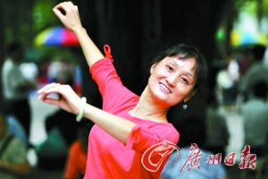 劉女士舞姿優(yōu)美,一點(diǎn)不比年輕人遜色。黃嵩/攝