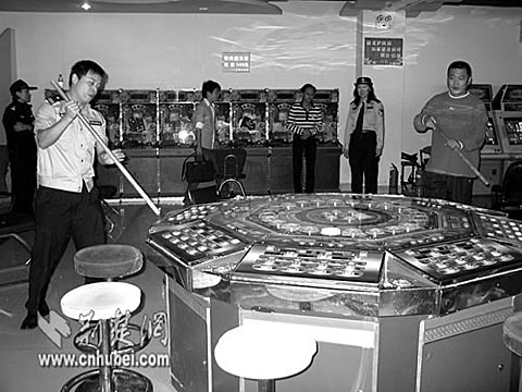 民警砸毀賭博機