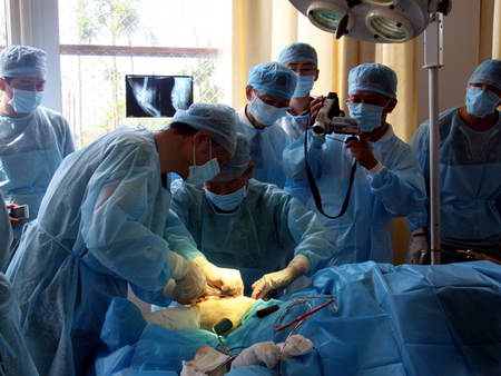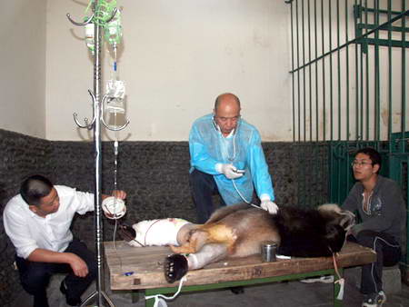 基地專(zhuān)家告訴四川新聞網(wǎng)記者,骨科手術(shù)要求很?chē)?yán),在所有手術(shù)中僅次于心臟手術(shù),稍有不慎就可能造成感染引發(fā)骨髓炎,并有截肢的危險(xiǎn)。為確保手術(shù)萬(wàn)無(wú)一失,基地獸醫(yī)與成都軍區(qū)八一骨科醫(yī)院的專(zhuān)家反復(fù)討論手術(shù)方案,為減少運(yùn)輸和增加感染,專(zhuān)家一致決定將手術(shù)地點(diǎn)確定在基地的新獸醫(yī)院。