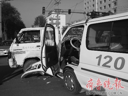 “120”闖紅燈撞上小貨車 無(wú)人員傷亡(圖)