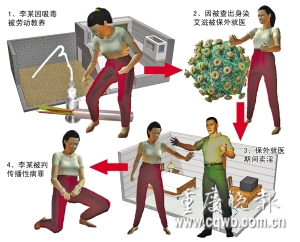 據(jù)永川區(qū)法院介紹,該區(qū)下崗中年婦女李某原是一名吸毒女子,因吸毒被勞動(dòng)教養(yǎng)。進(jìn)勞教所時(shí),抽血化驗(yàn)查出李的血液中攜帶艾滋病毒。勞教場所為此對(duì)李采取了保外就醫(yī)措施。