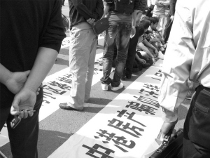大批業(yè)主市政府前滯留不走