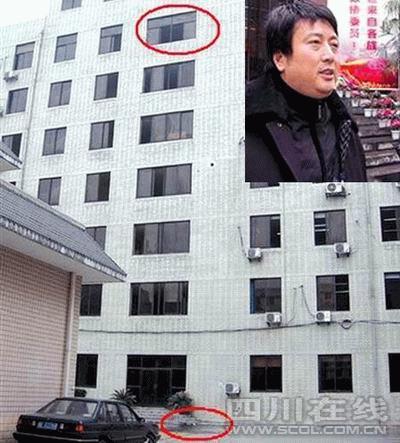 由于縣公安局緊鄰縣政府,民警很快就趕到了現(xiàn)場。在死者的身上,警方搜出的身份證顯示,該男子叫謝貴華,現(xiàn)年44歲,系佳美公司董事長、縣政協(xié)委員。在距離墜樓處僅數(shù)十米的政府大院一角,警方還找到了謝貴華的“川L55335”銀灰色帕薩特轎車。
