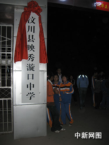 來(lái)到學(xué)校天已擦黑,校門(mén)口掛著“汶川縣映秀璇口中學(xué)”的牌子,汶川——這個(gè)屬于四川的地名,這個(gè)因?yàn)槟菆?chǎng)巨大災(zāi)難而舉世周知的地名,出現(xiàn)在這里,無(wú)疑有著特殊的意味。而那塊經(jīng)歷過(guò)覆頂之災(zāi)的校牌,則以嶄新的面貌出現(xiàn)在這里——掛在上的紅綢依然還很鮮艷。同學(xué)們穿著校服,見(jiàn)到前來(lái)的記者們,好奇地簇?fù)碇^看!案绺缃憬愫谩,孩子們很有禮貌地打著招呼,青春的校園在不上課的時(shí)候永遠(yuǎn)是喧嚷熱鬧的。