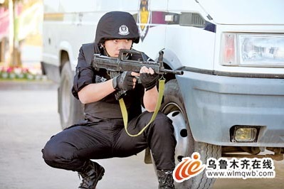 高速公路上,一輛黑色轎車突然沖過交警卡點,警笛響起,頭戴鋼盔、手持微型沖鋒槍的特勤民警快速出擊,嫌疑人向民警開槍時被“擊斃”……10月21日,新疆高等級公路交警支隊進行了建隊十年來,規(guī)模最大的一次快速應(yīng)對高速路突發(fā)事件演習(xí)。