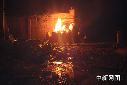 據(jù)一位現(xiàn)場救援的消防人員介紹,爆炸現(xiàn)場濃煙四起,一團團火苗從液化氣罐中噴出六七米高,發(fā)出“吱-吱”的聲響,廠區(qū)內不時發(fā)生爆炸,鋼結構車間受損嚴重,頂部及東北角墻體被爆開,據(jù)現(xiàn)場了解,里面已有10多枚液化氣罐發(fā)生了爆炸。而廠區(qū)東側為居民住房,距車間約5米,廠區(qū)西側為阿克蘇王三油漆化工廠,南側為空地,堆放成品發(fā)泡網,北側為該單位庫房,堆放大量成品發(fā)泡網,油漆車間與發(fā)泡網廠車間相連,里面放著價值約30余萬元的涂料和設備,火勢力借著風力逐漸向四周蔓延,如不及時撲救,很可能發(fā)生火燒連營的危險,造成更大的經濟損失。